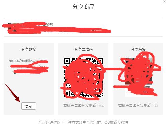 获取商品及店铺首页链接步骤一:在商品列表页面点击分享商品获取商品及店铺首页链接步骤二:弹出分享商品页面后点击复制链接即得到了商品链接