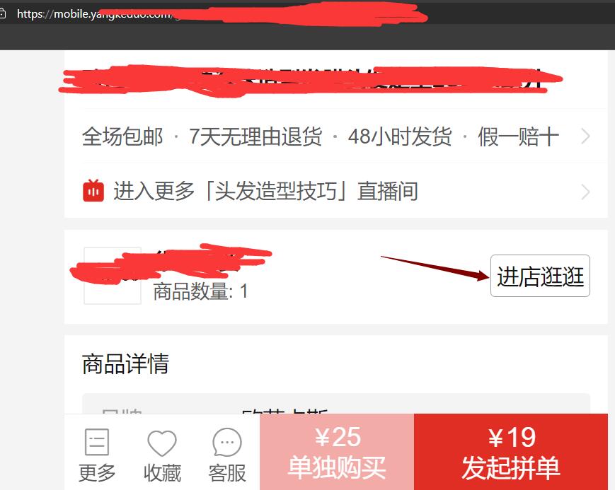 获取店铺首页链接步骤三:在浏览器打开上一步复制的链接后,往下滑在商品详情页面点击进店逛逛